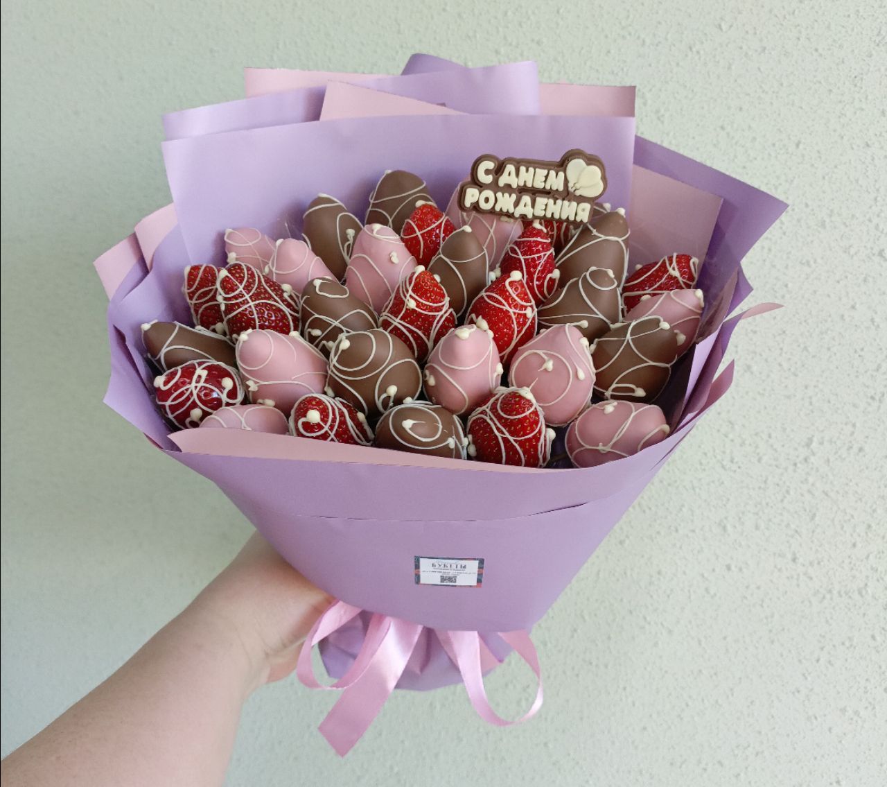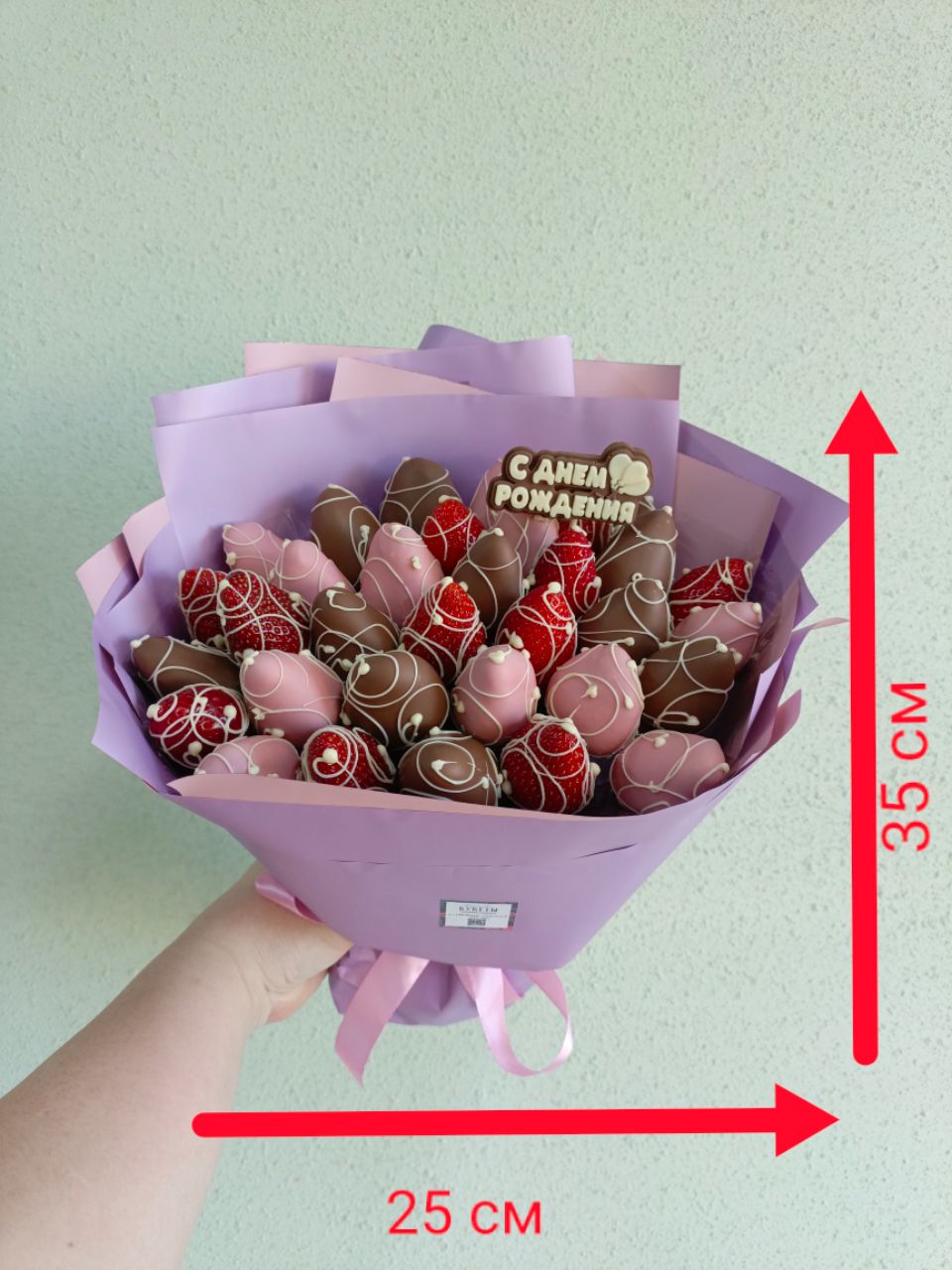В букете примерно 33 клубники.