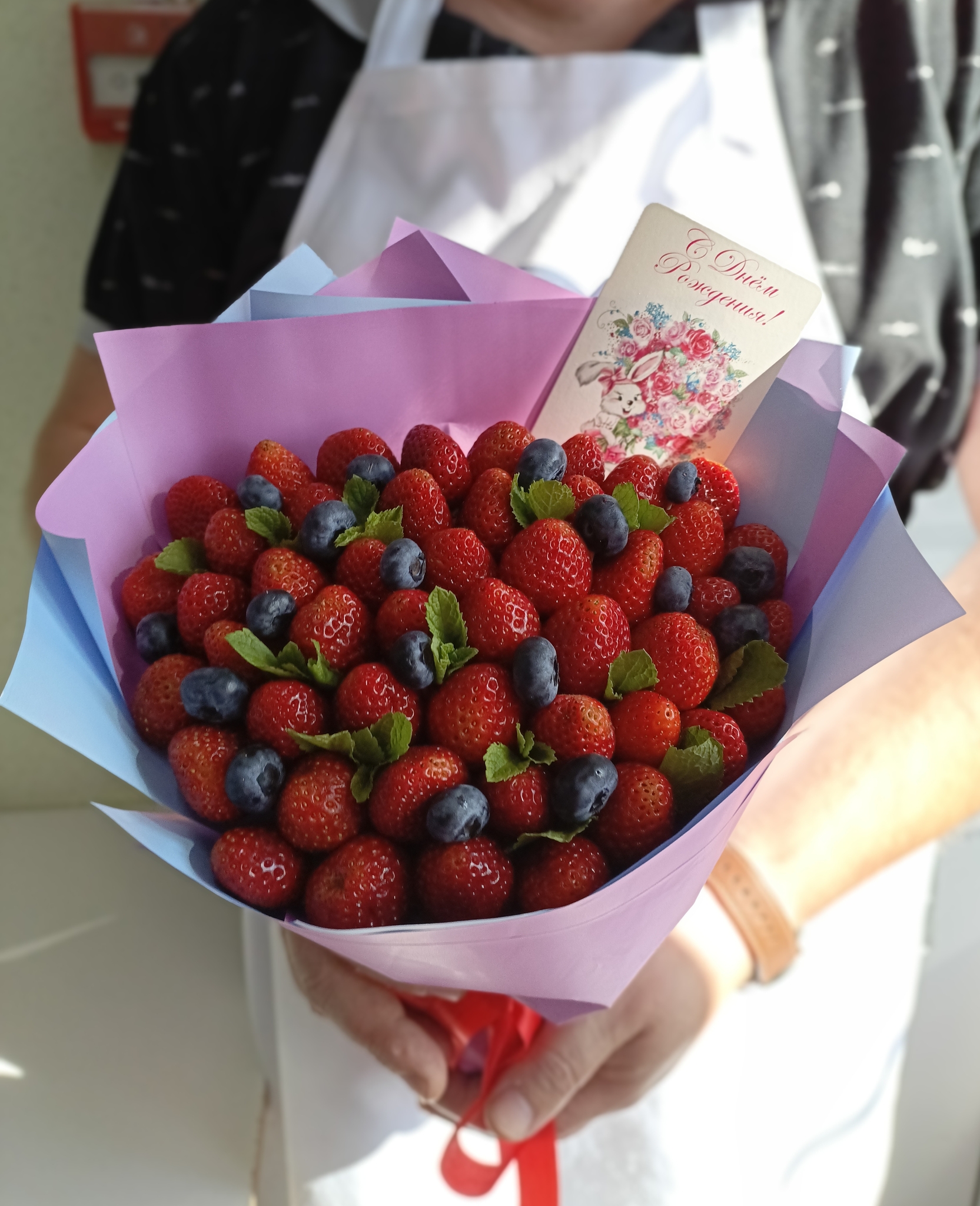 Милый Ягодный букет из свежей клубники и голубики! Подарит радость и прекрасное настроение!
