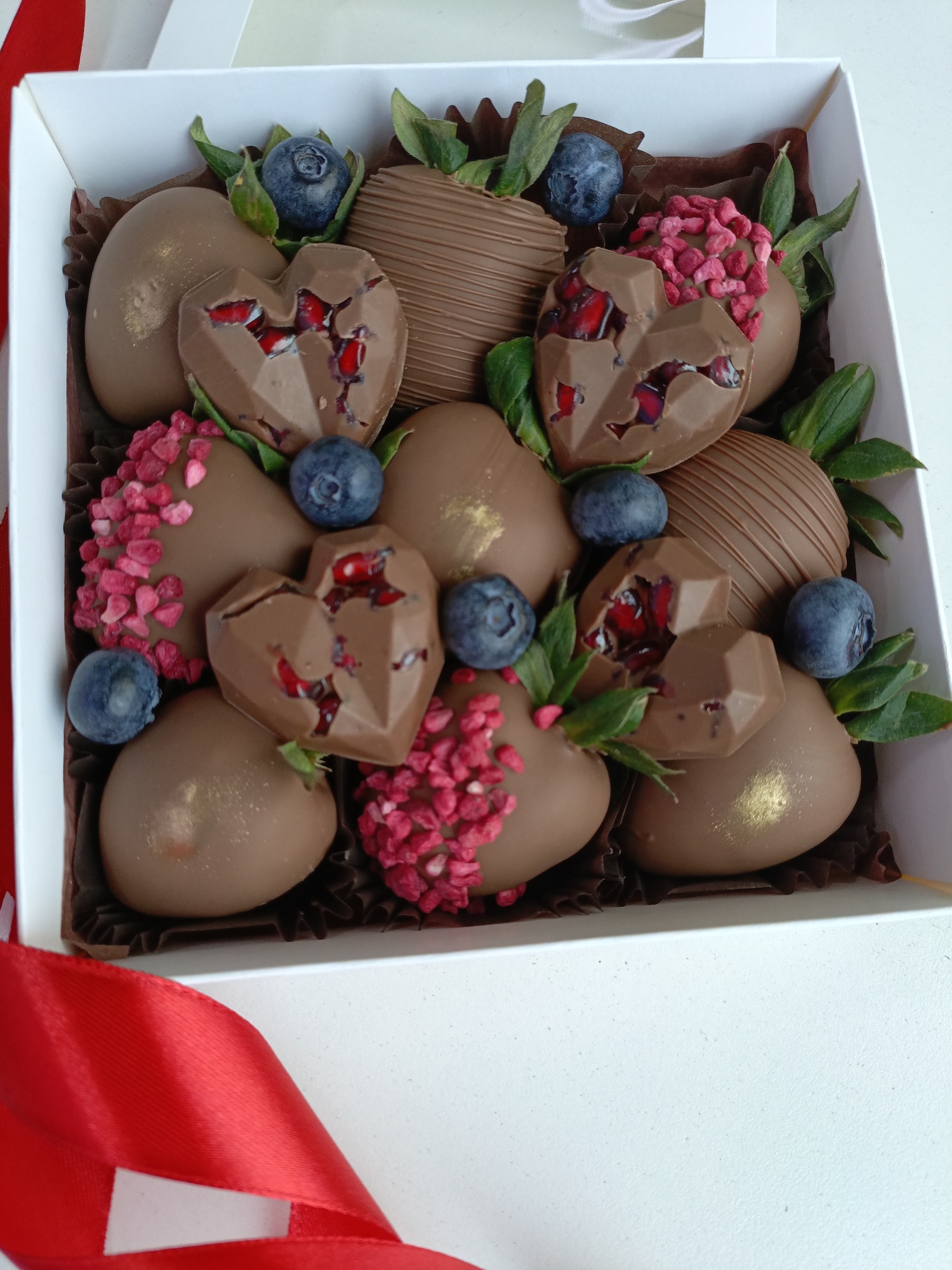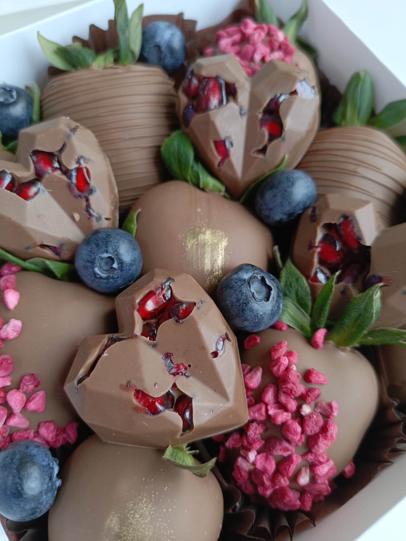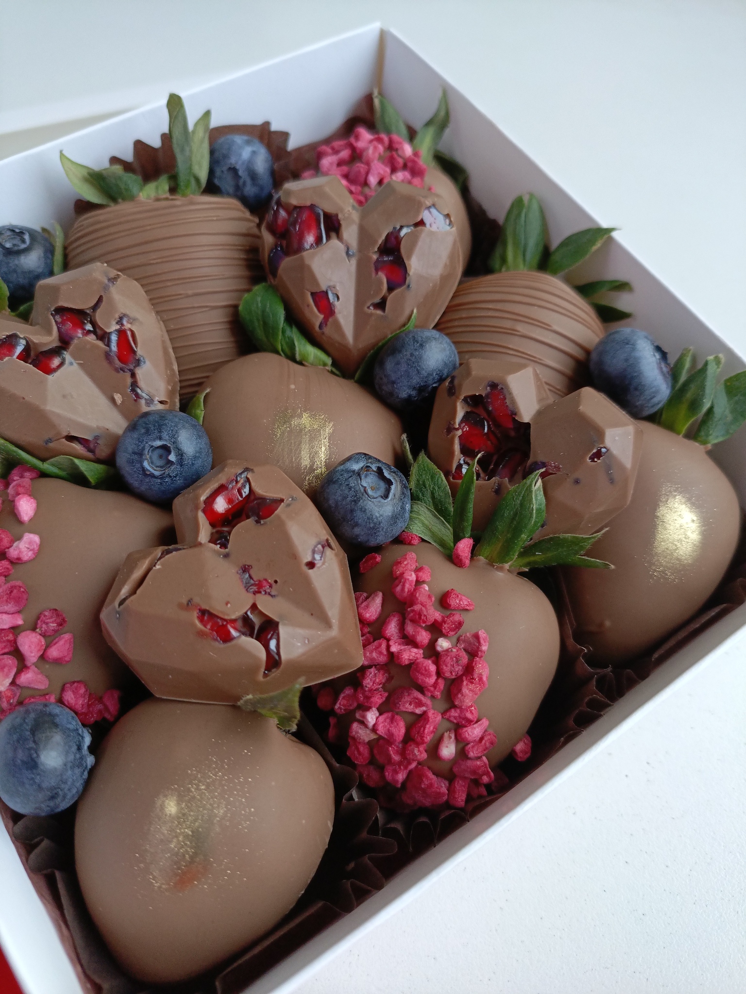 Подарите себе незабываемое удовольствие! Наши клубника и гранат в шоколаде – это идеальное сочетание сладости фруктов и насыщенности темного шоколада. Это не просто десерт, а настоящее произведение искусства, которое порадует вас своим вкусом и эстетической красотой. Отличный выбор как для подарка близким, так и для себя любимых. Прекрасно подойдет к любому чаепитию или романтическому вечеру. Заказывайте прямо сейчас и наслаждайтесь моментом!