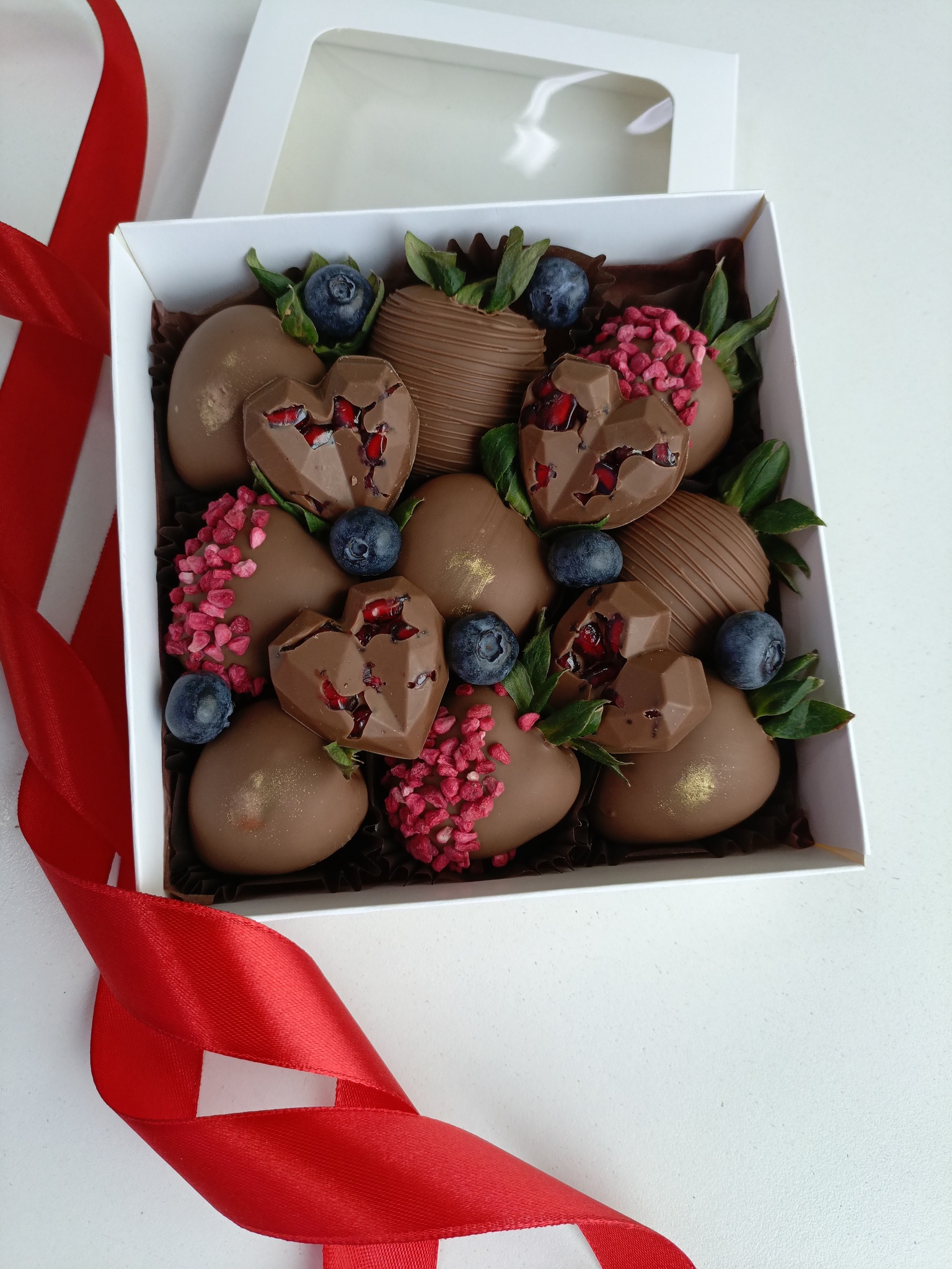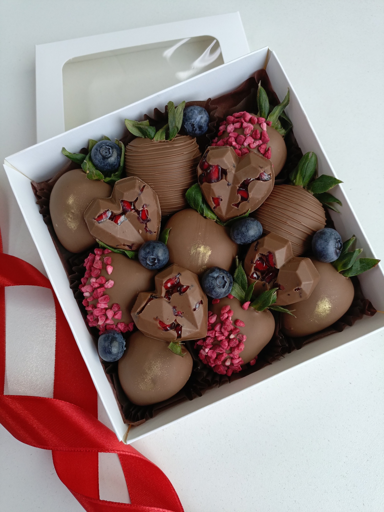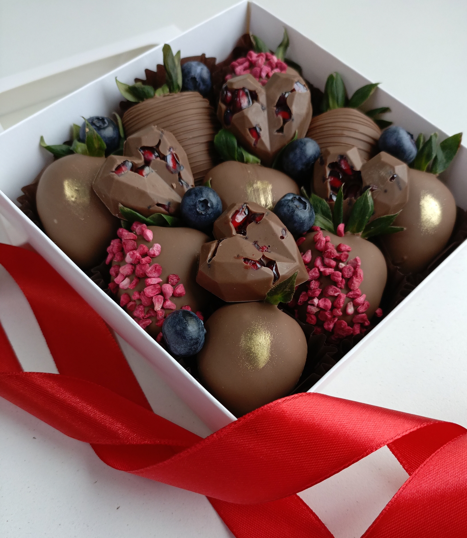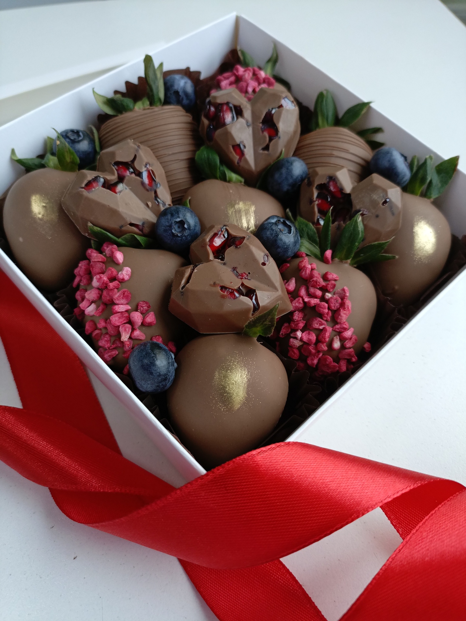 Подарите себе незабываемое удовольствие! Наши клубника и гранат в шоколаде – это идеальное сочетание сладости фруктов и насыщенности темного шоколада. Это не просто десерт, а настоящее произведение искусства, которое порадует вас своим вкусом и эстетической красотой. Отличный выбор как для подарка близким, так и для себя любимых. Прекрасно подойдет к любому чаепитию или романтическому вечеру. Заказывайте прямо сейчас и наслаждайтесь моментом!