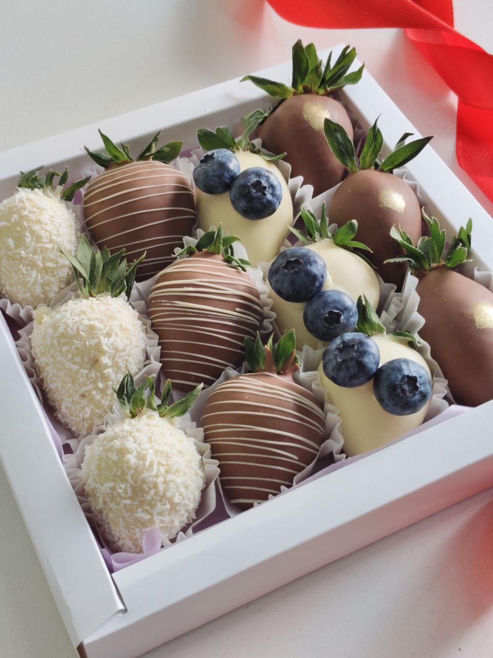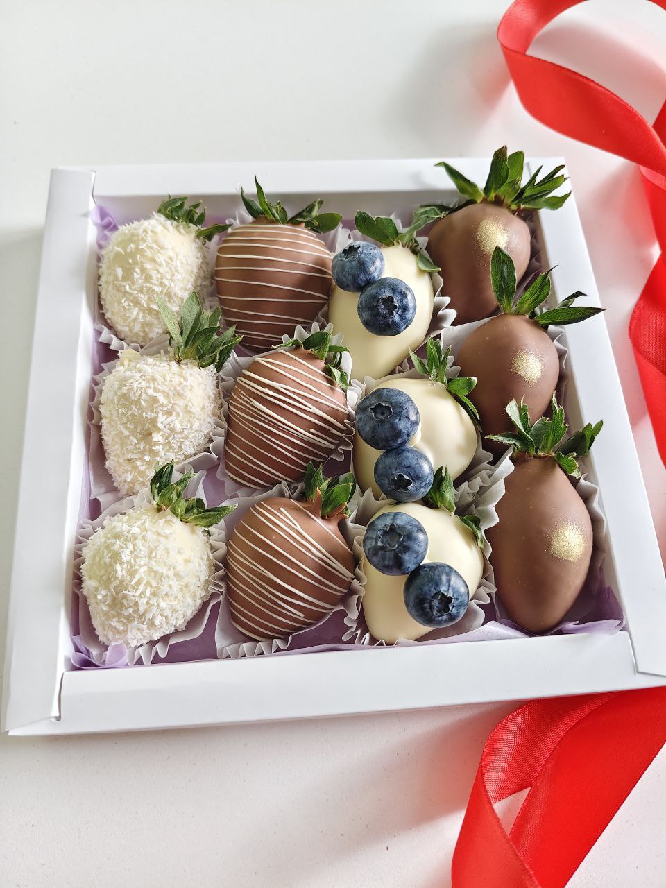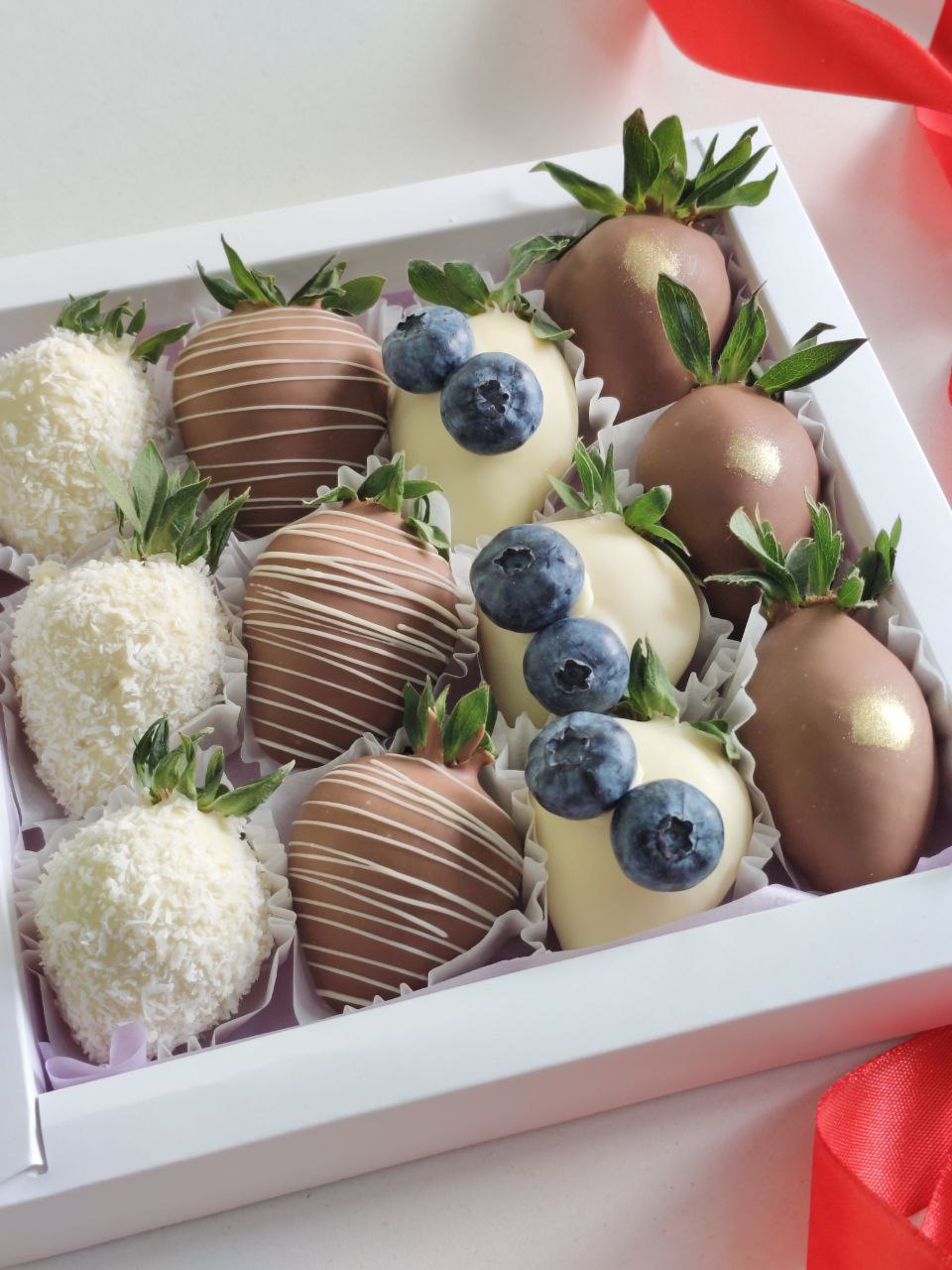 Вкусный и красивый десерт из клубники в шоколаде с ягодами голубики! Подарок по любому поводу!