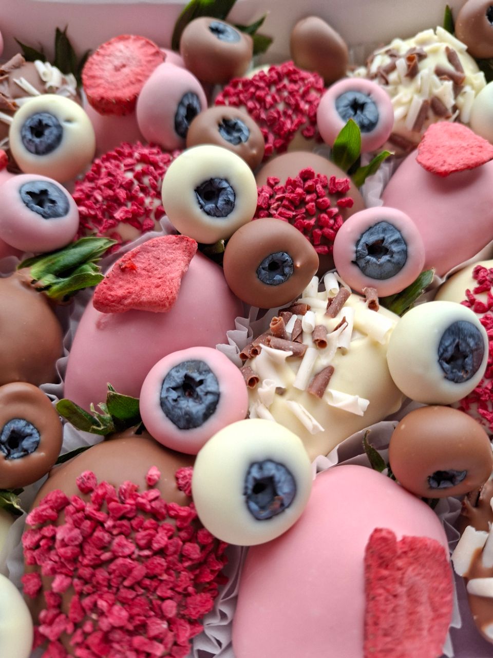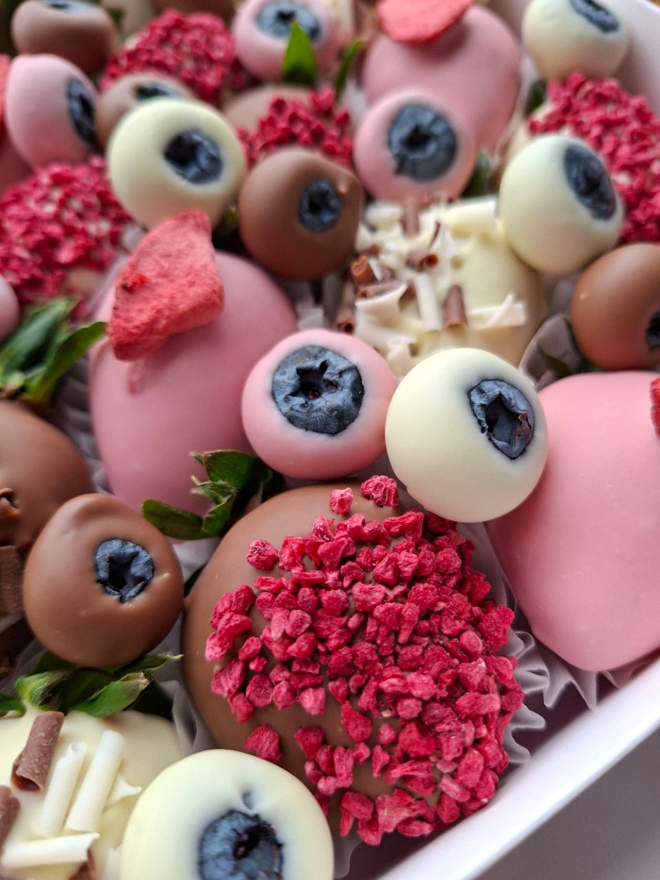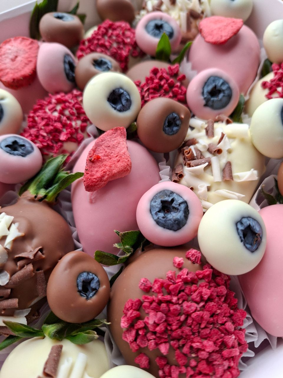 Вкусно, ярко,аппетитно и очень красиво! В одном наборе собрание сочные ягоды клубники и голубики, в сочетании с бельгийским премиальным шоколадом.