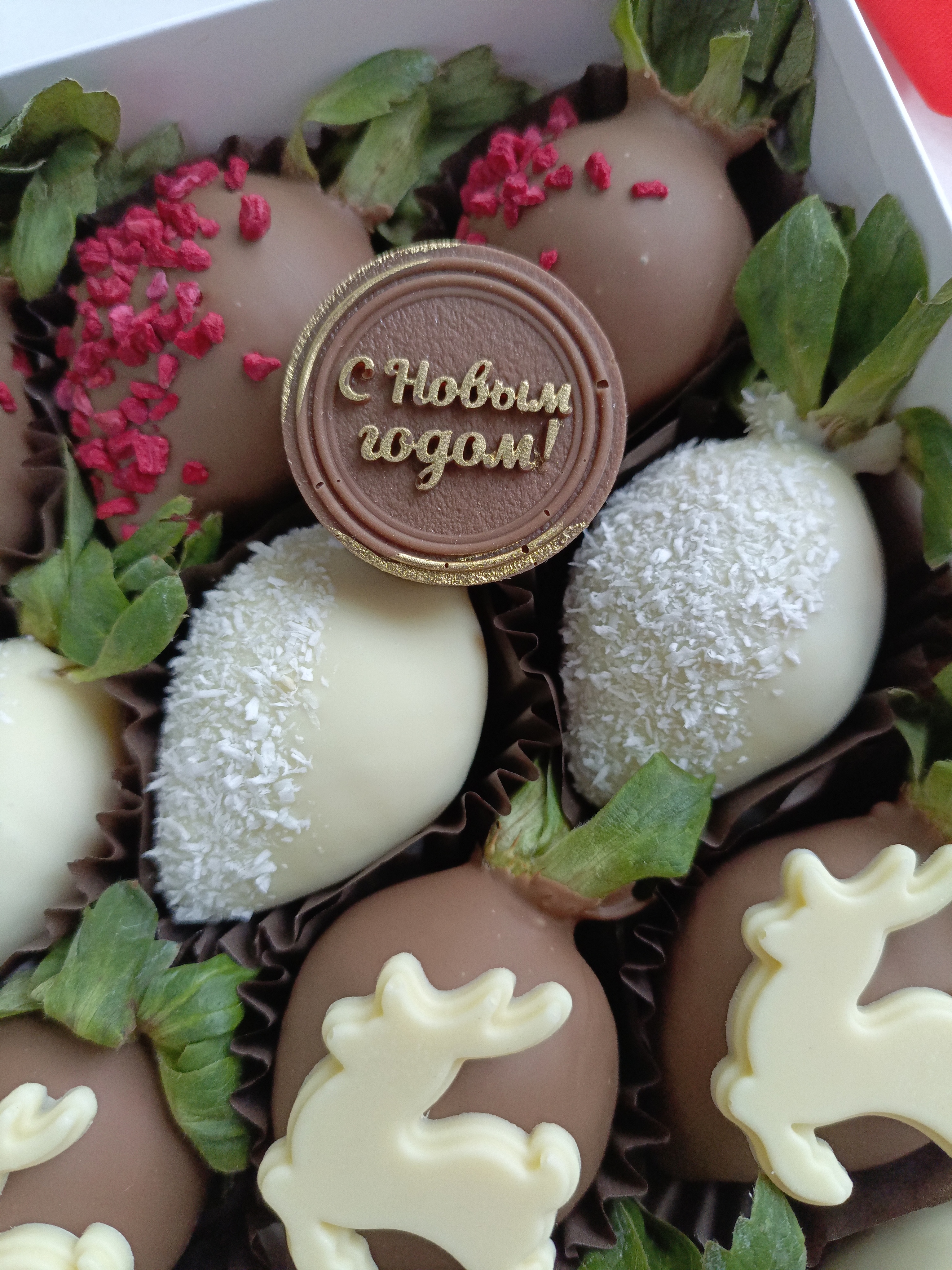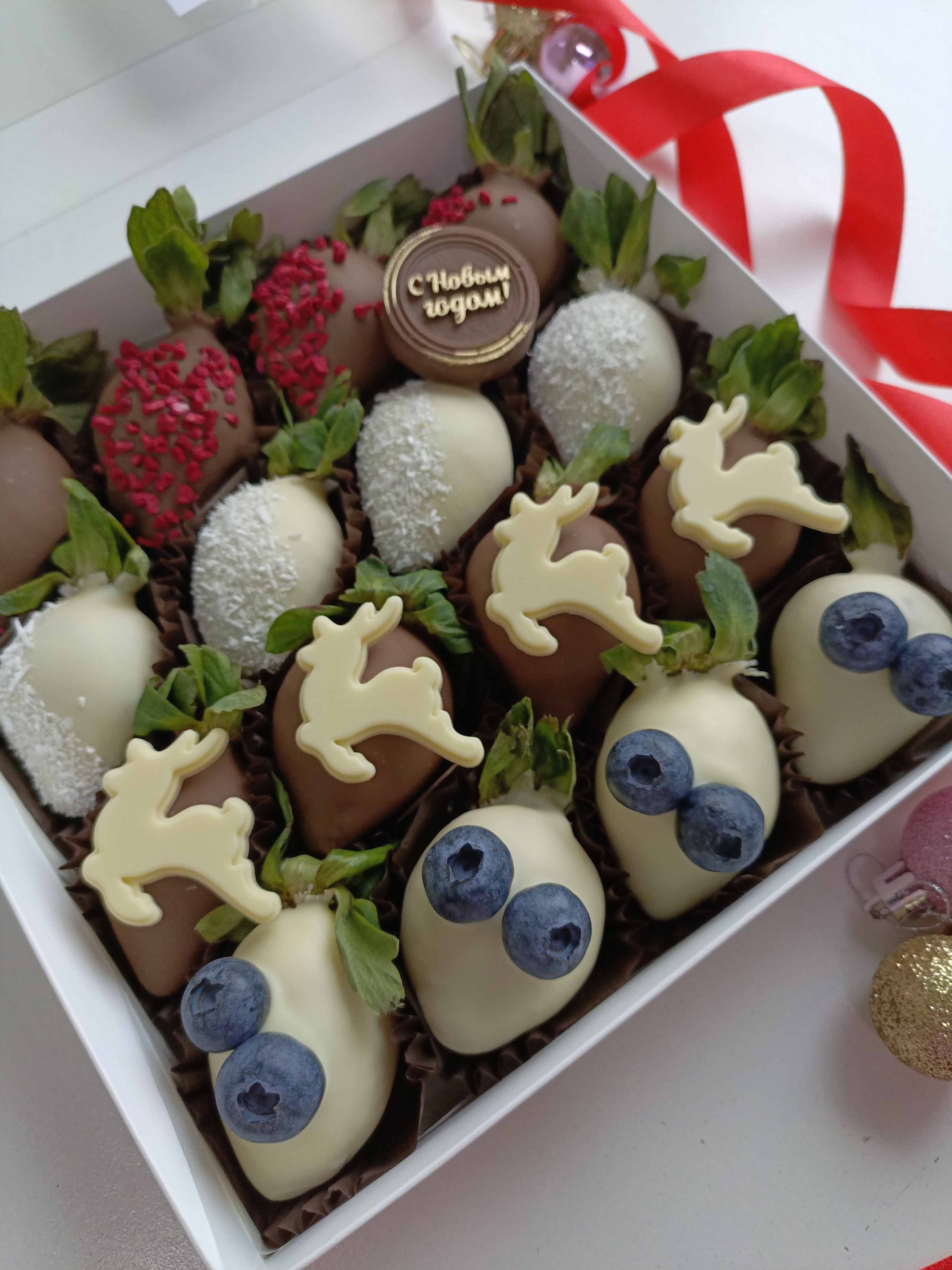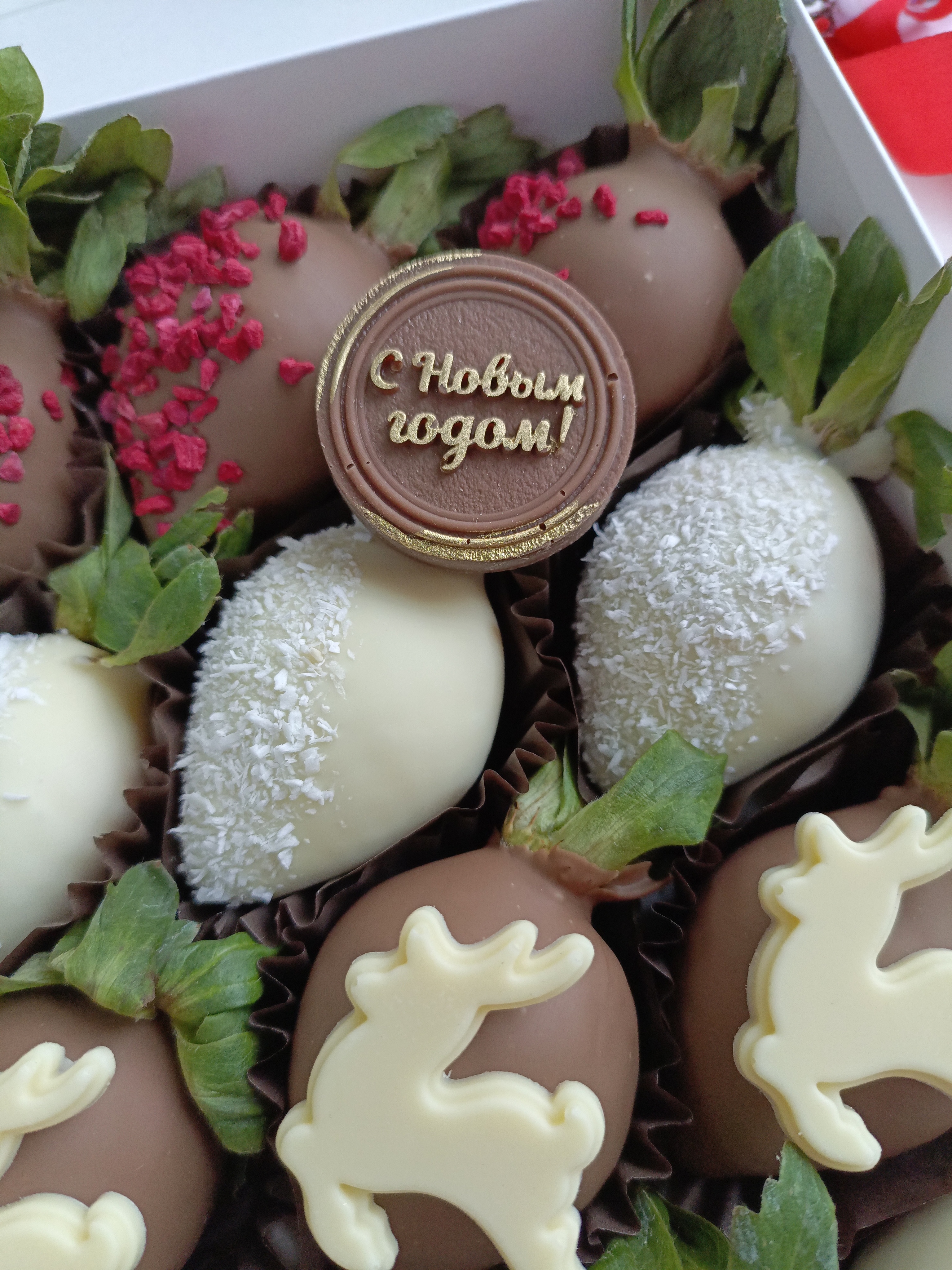 Новогодняя сладость «Клубника в шоколаде "Оленьки" 2026» — идеальный подарок и украшение праздничного стола! Шоколадное покрытие сочетает нежность вкуса клубники и пользу какао-бобов, заряжая бодростью и хорошим настроением. Подарите близким удовольствие от дегустации ручного шоколада и яркую новогоднюю атмосферу уже сегодня! Удобная упаковка позволяет взять лакомство с собой на праздники и встречи.