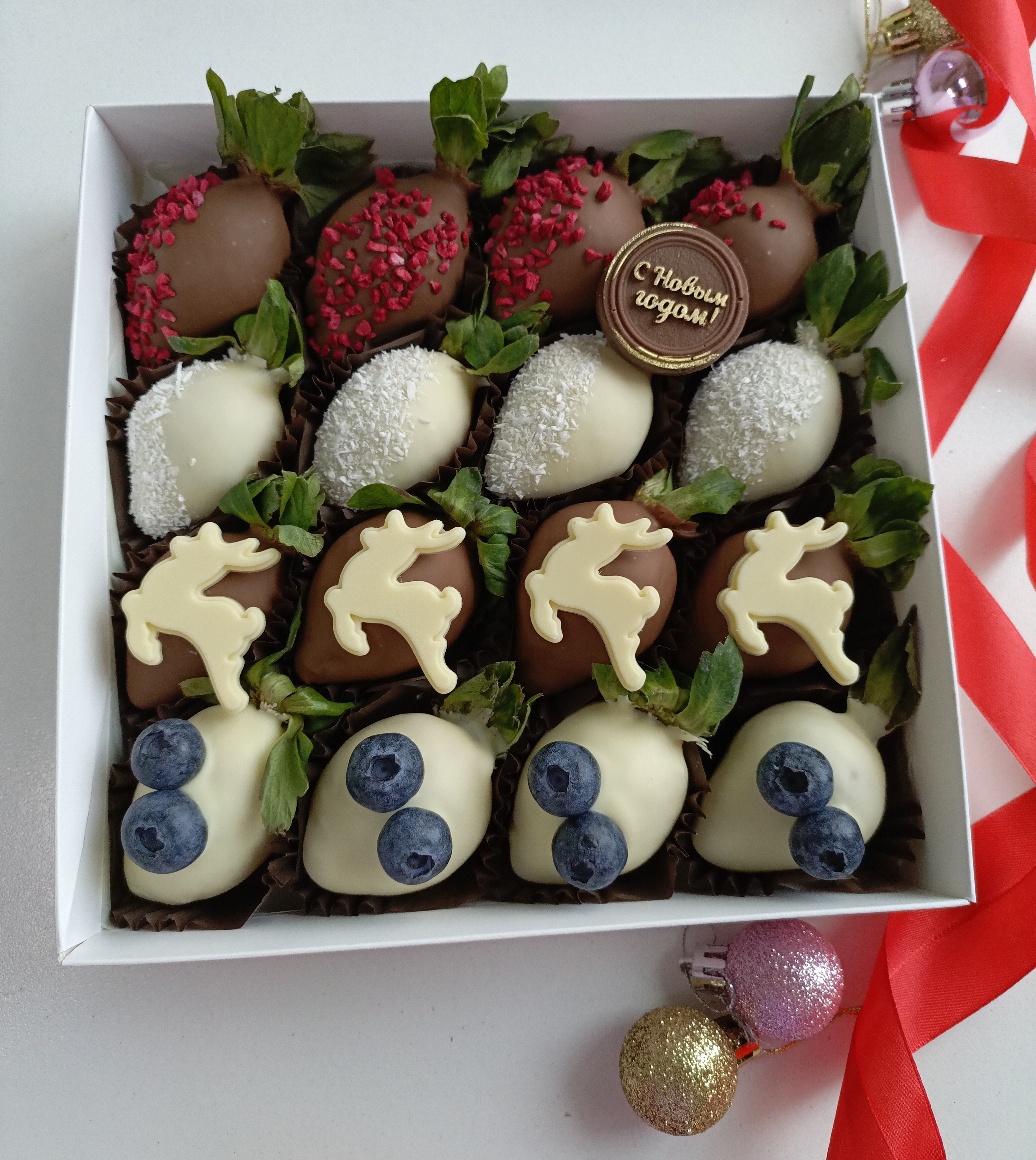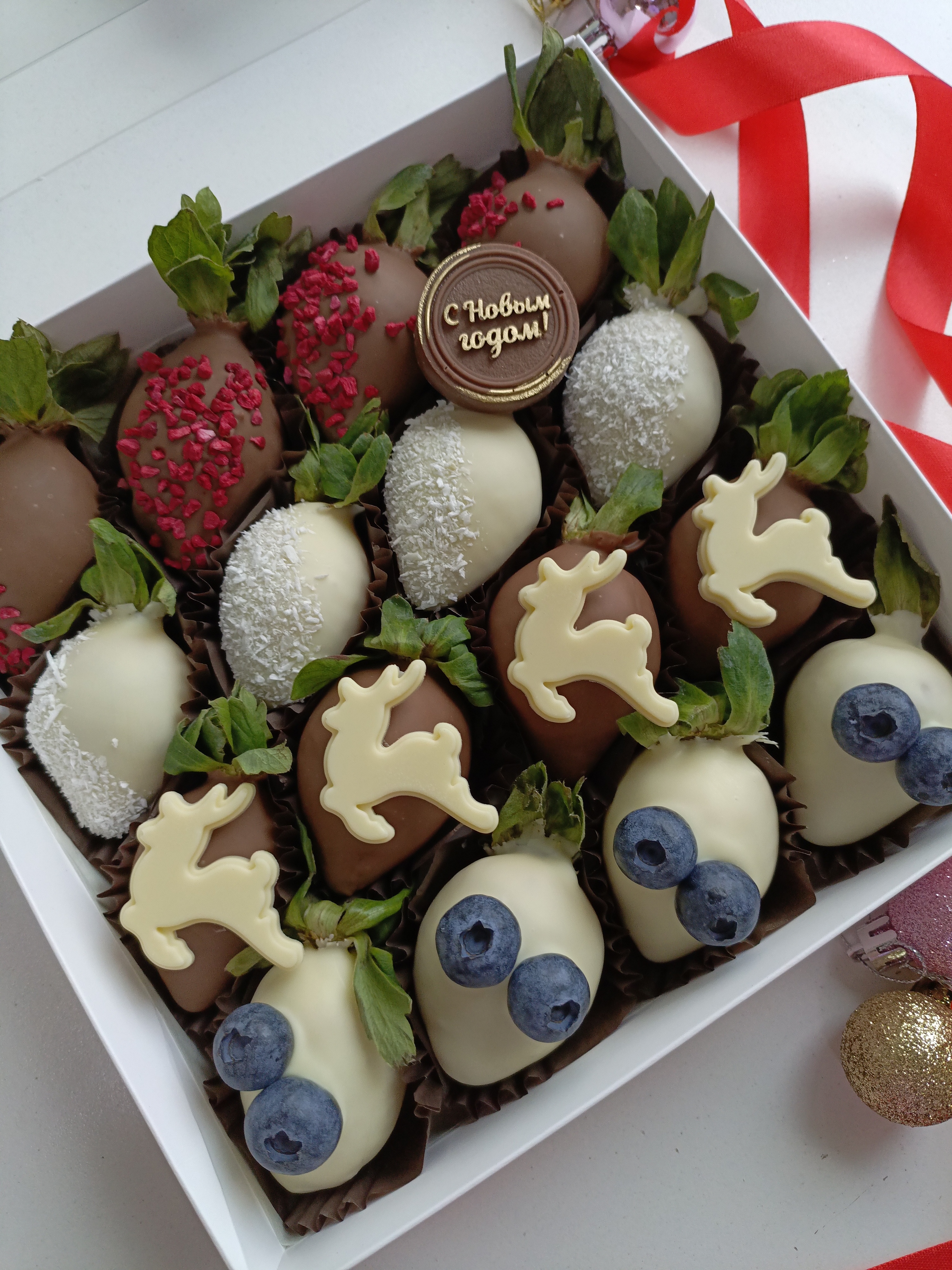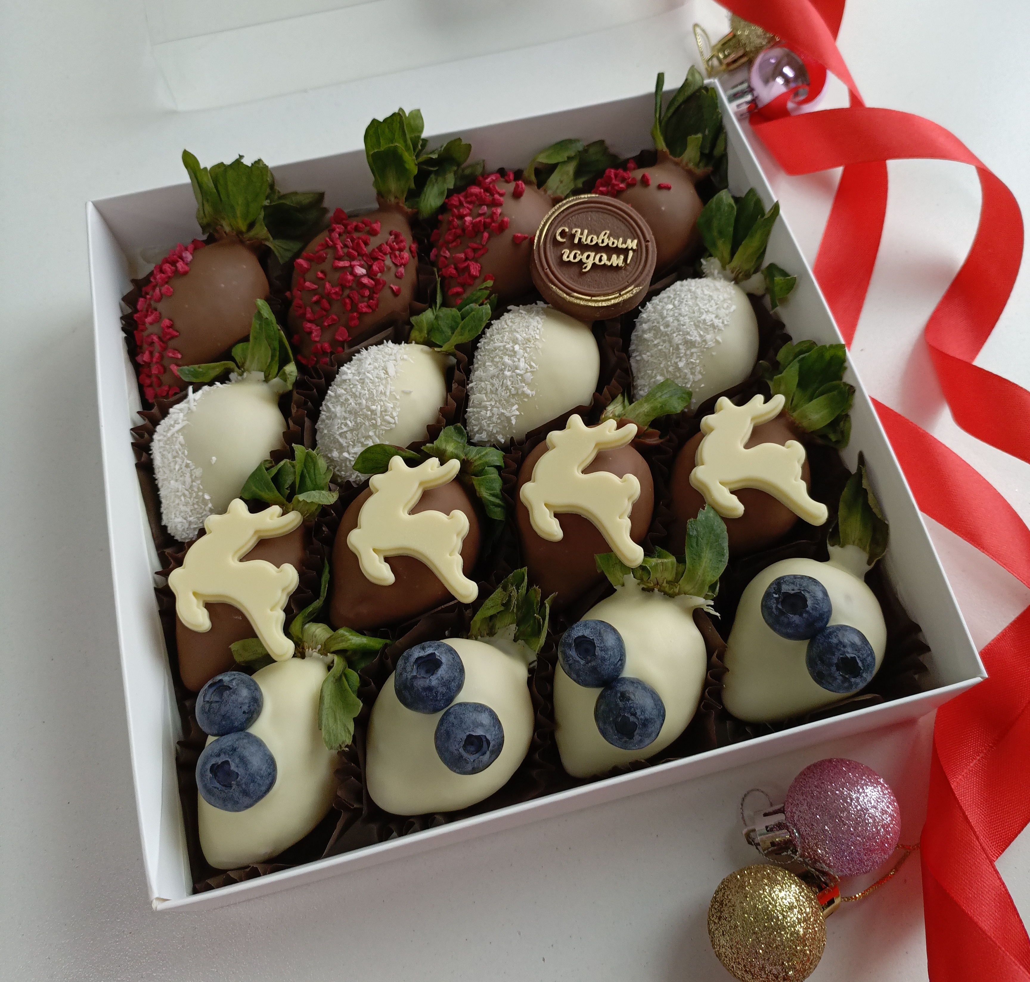 Новогодняя сладость «Клубника в шоколаде "Оленьки" 2026» — идеальный подарок и украшение праздничного стола! Шоколадное покрытие сочетает нежность вкуса клубники и пользу какао-бобов, заряжая бодростью и хорошим настроением. Подарите близким удовольствие от дегустации ручного шоколада и яркую новогоднюю атмосферу уже сегодня! Удобная упаковка позволяет взять лакомство с собой на праздники и встречи.