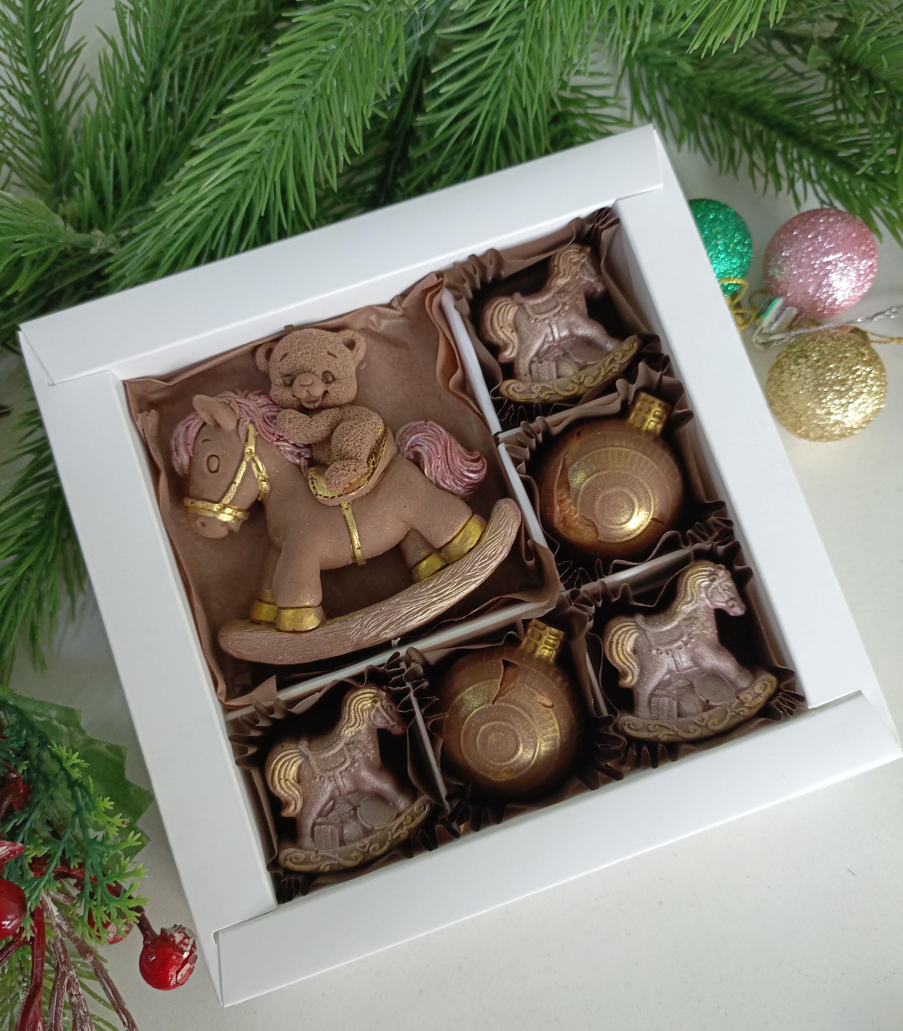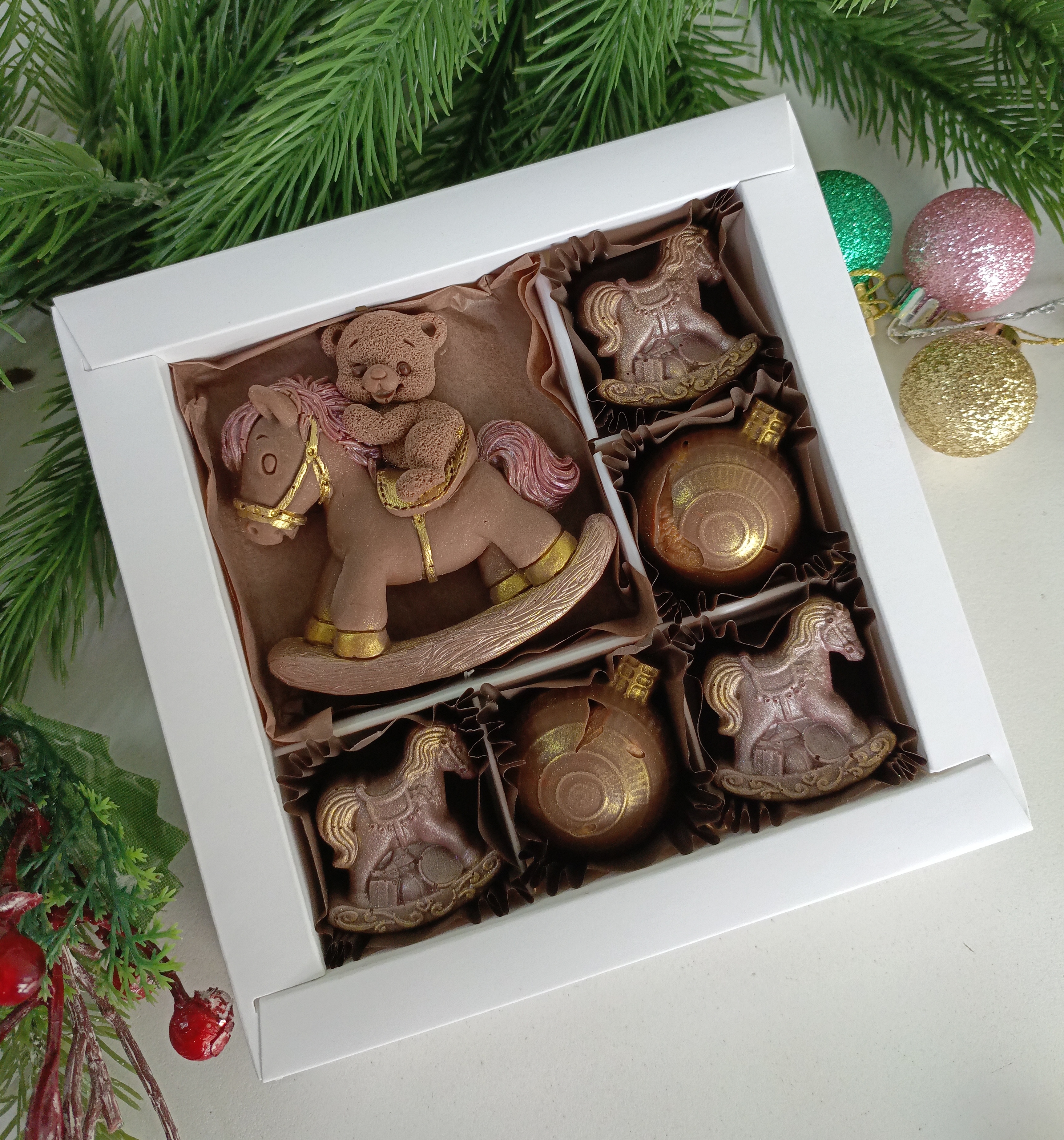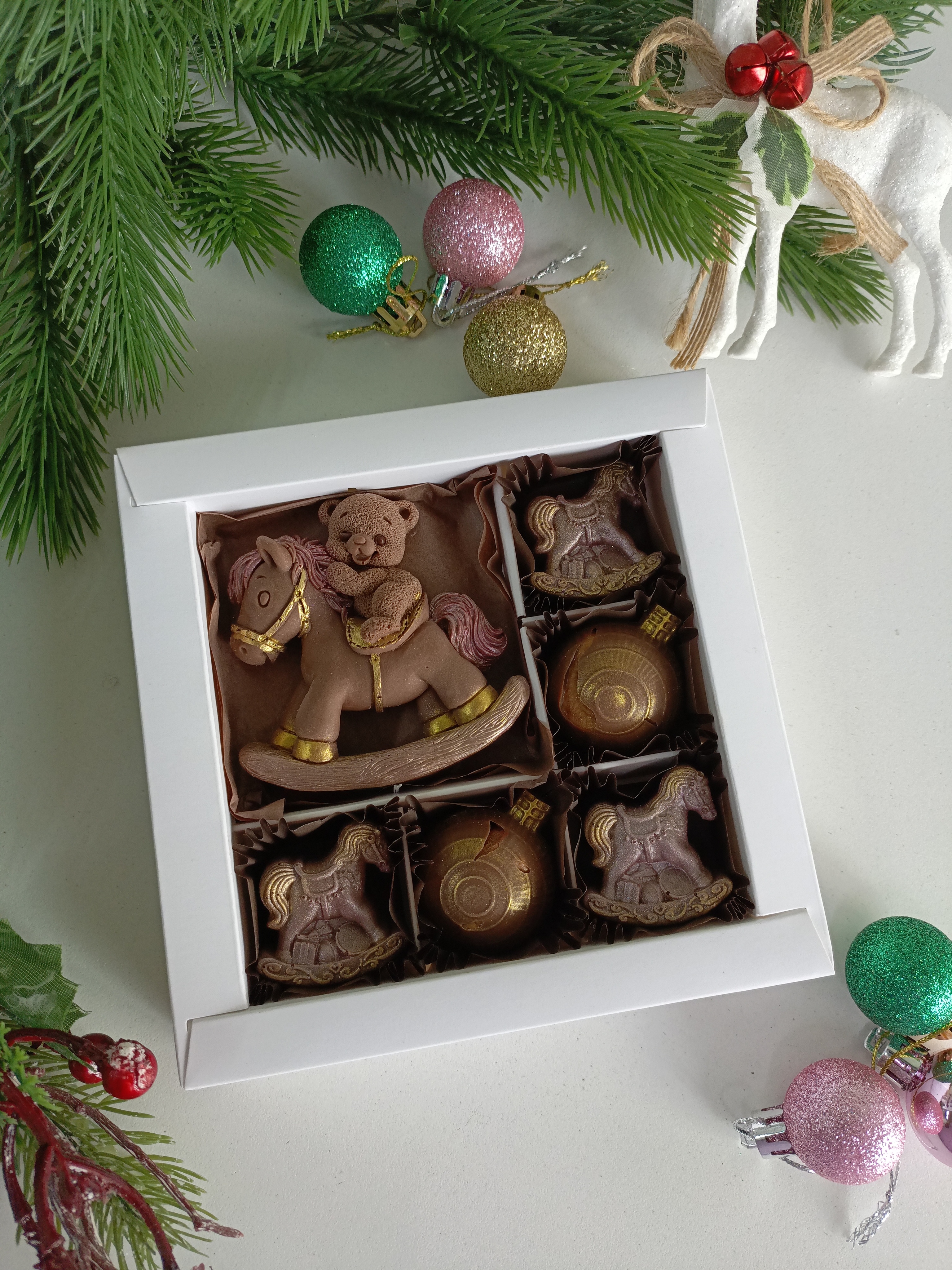 Подарите близким улыбку и радость с шоколадным набором «Лошадка и Мишка»! Высококачественный шоколад ручной работы в виде забавных животных — оригинальный подарок к новому году! Уникальные преимущества: ✅ Натуральный состав без искусственных добавок; ✅ Приятные вкусовые качества; ✅ Эффектная упаковка идеально подходит для подарка; ✅ Подарит удовольствие взрослым и детям!
