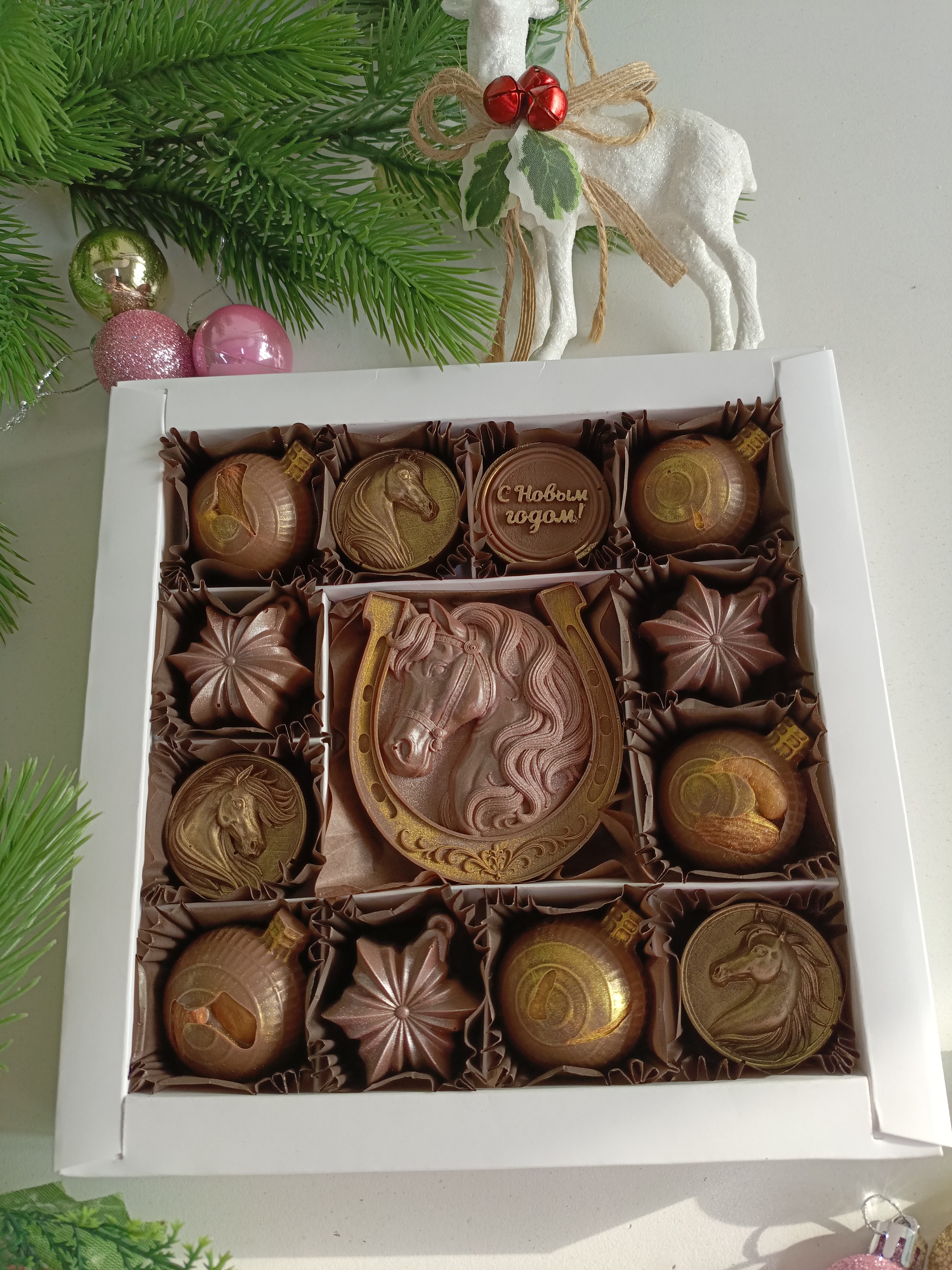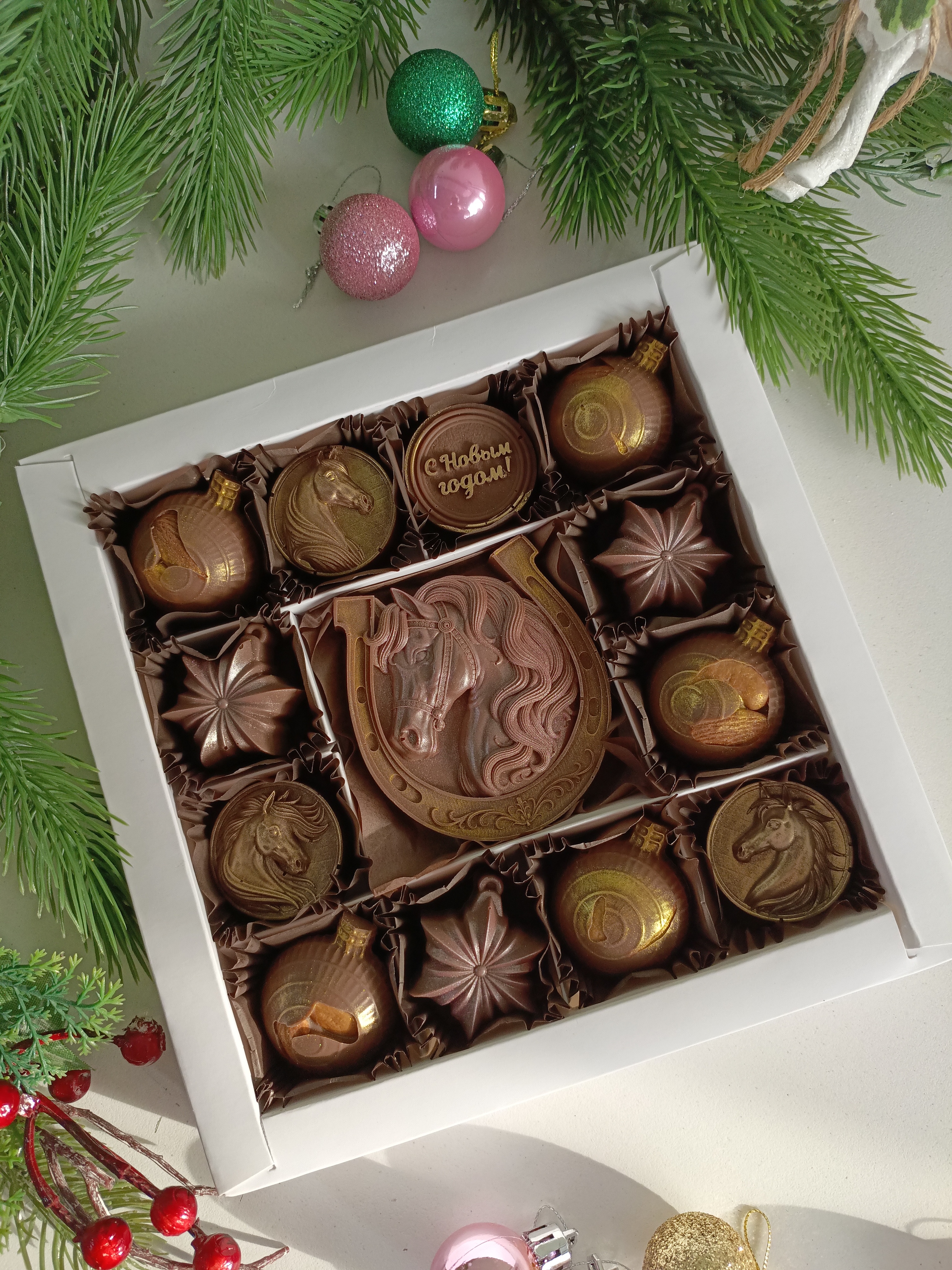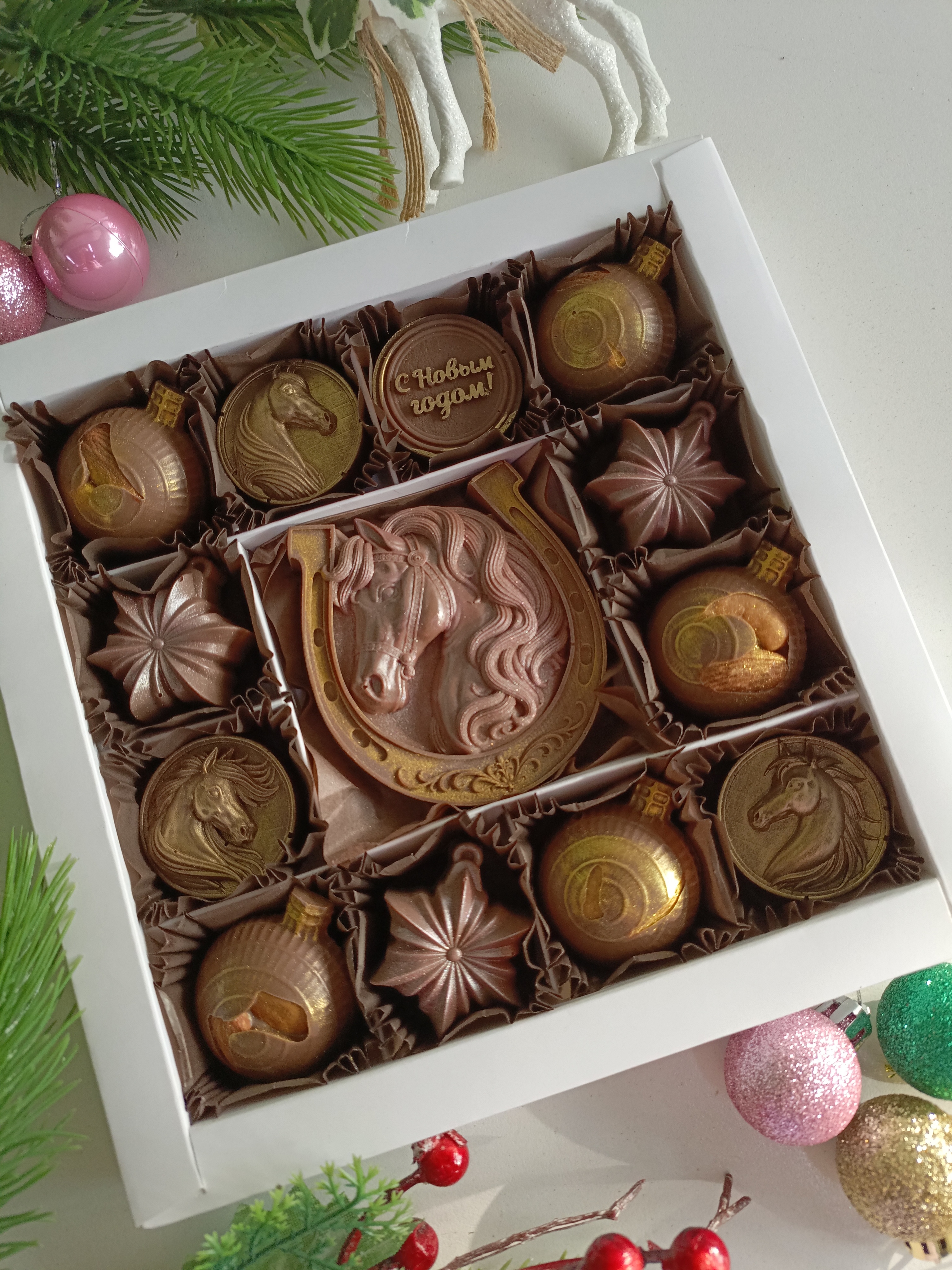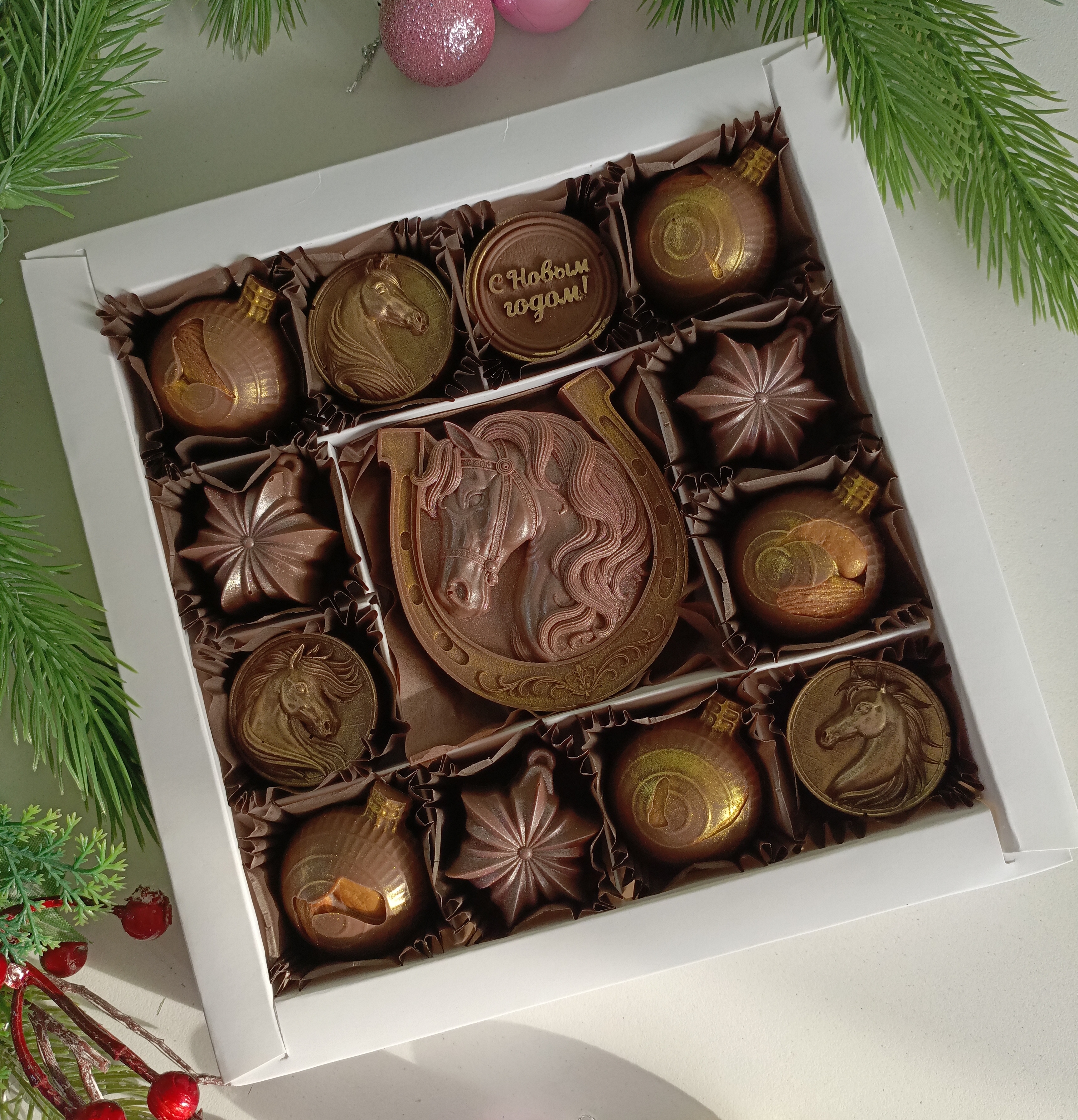 Погрузитесь в атмосферу праздника вместе со вкусным шоколадным набором, украшенным символом наступающего года! Это идеальный подарок близким людям, коллегам или себе любимым – он принесет радость каждому! Натуральные ингредиенты подарят истинное удовольствие гурману, а оригинальная упаковка подчеркнет ваше внимание к деталям. Приятно дарить и получать подарки – сделайте это незабываемым с нашим эксклюзивным шоколадным набором!