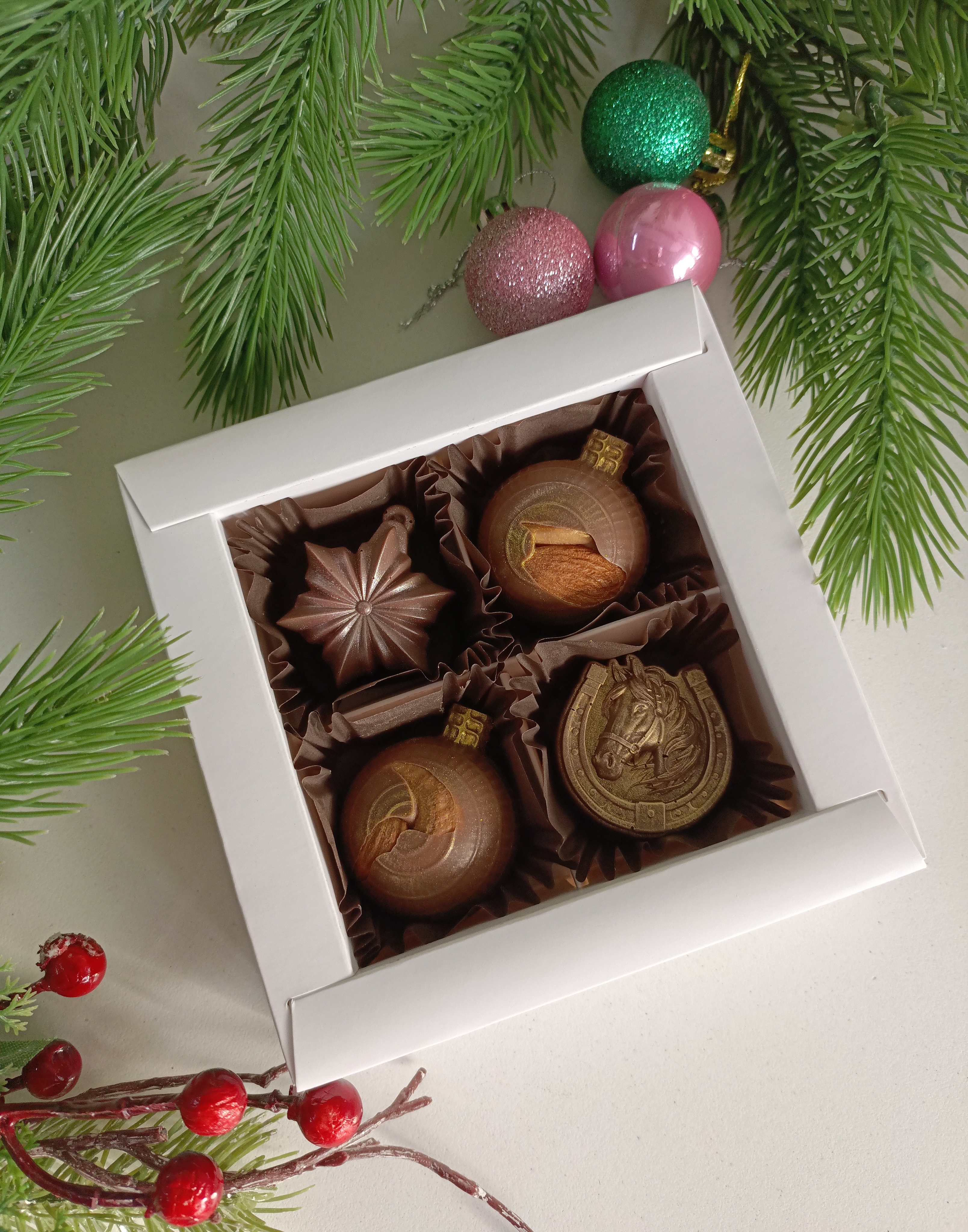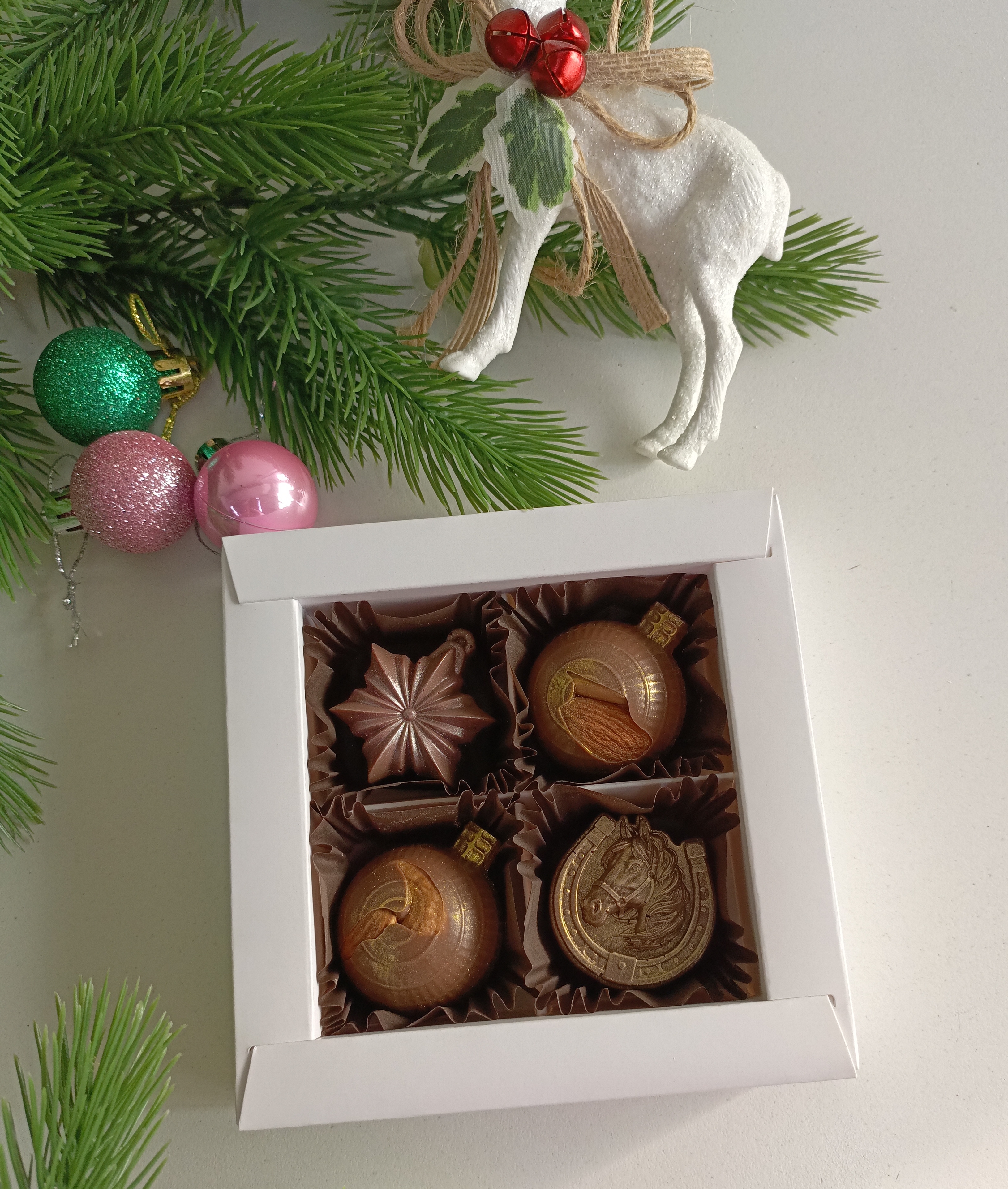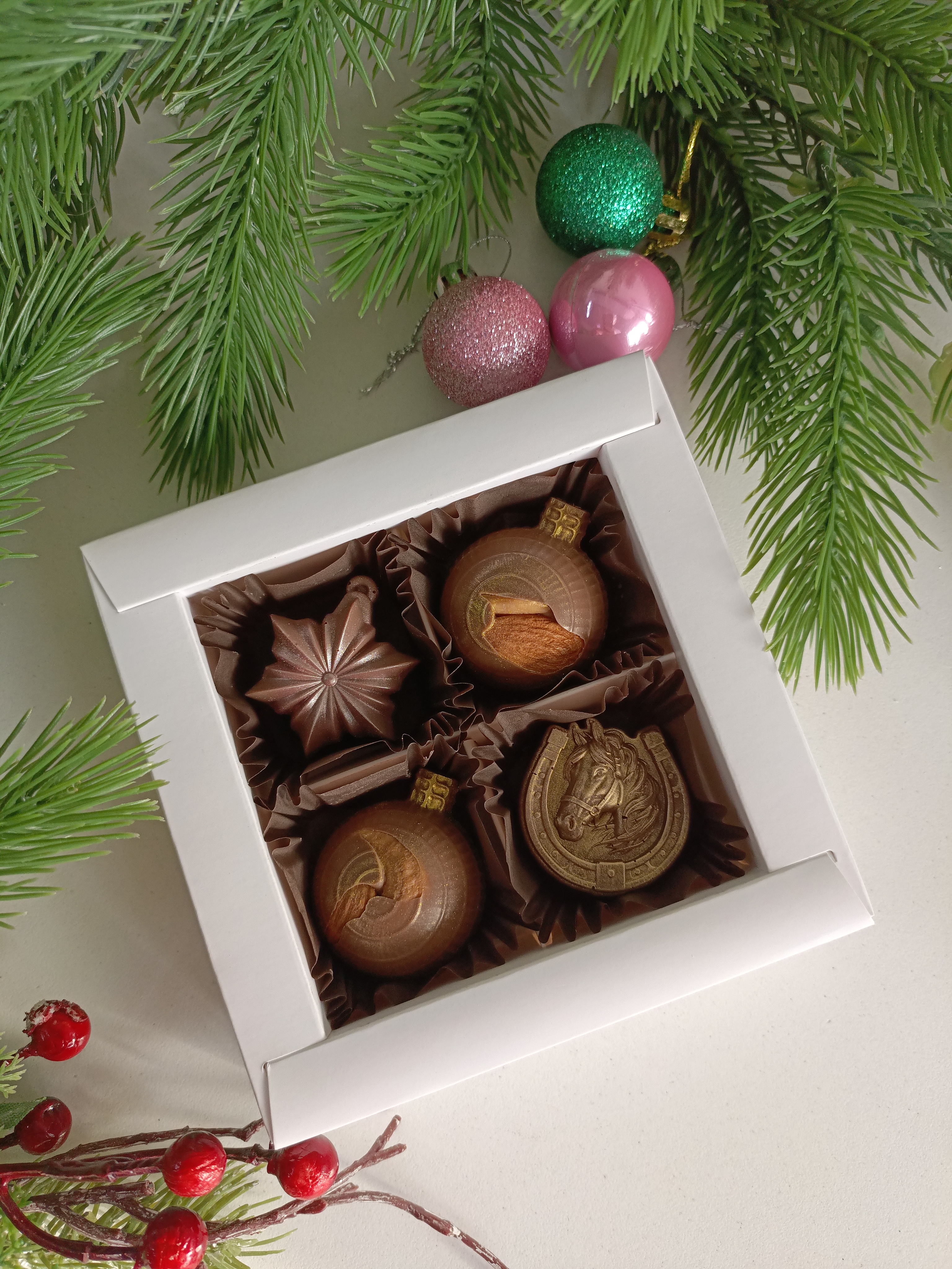 Красивый и новогодний шоколадный набор подарит волшебную атмосферу и наслаждение вкусом! Все фигурки изготовлены из премиального бельгийского шоколада Barry Callebaut ( молочный) .