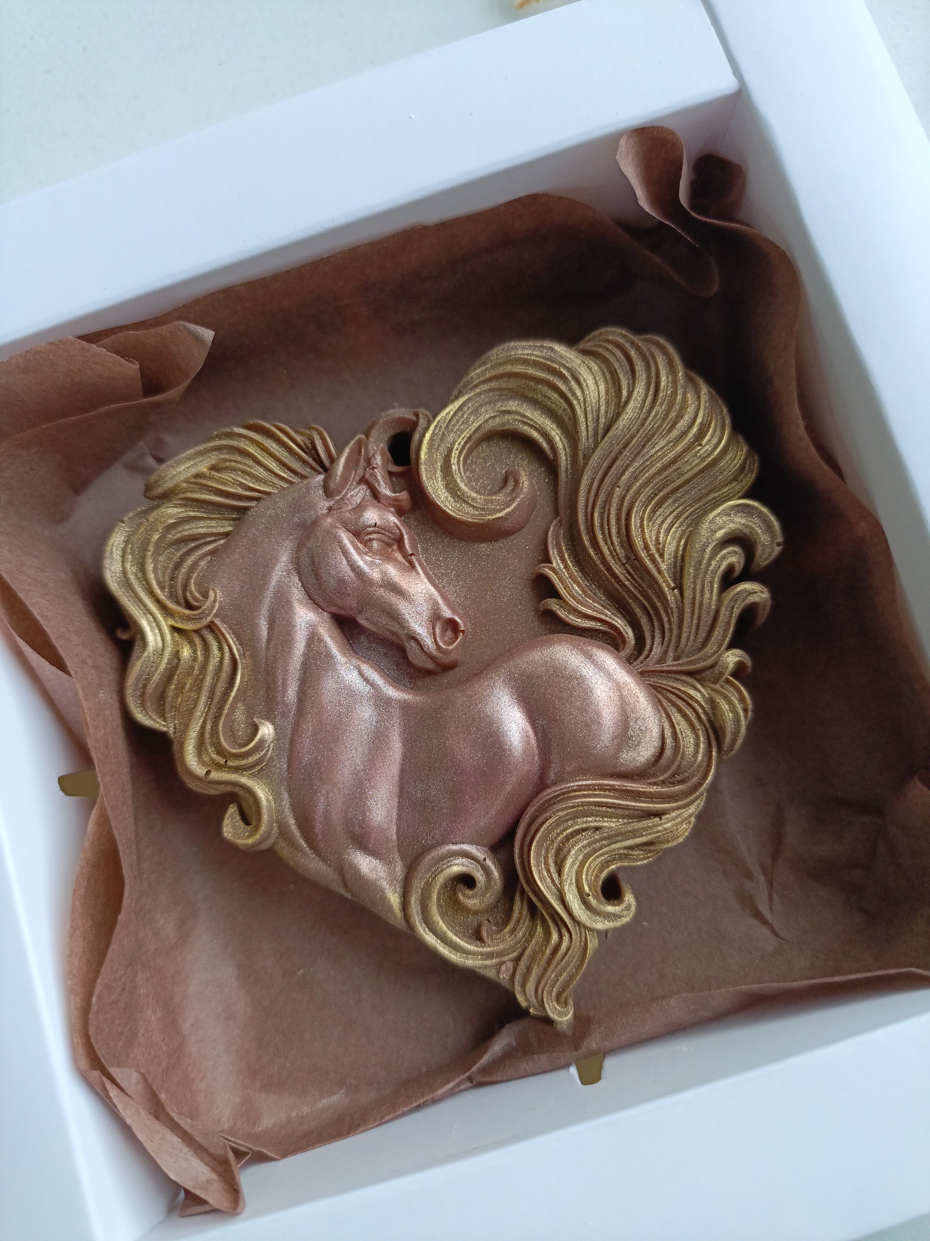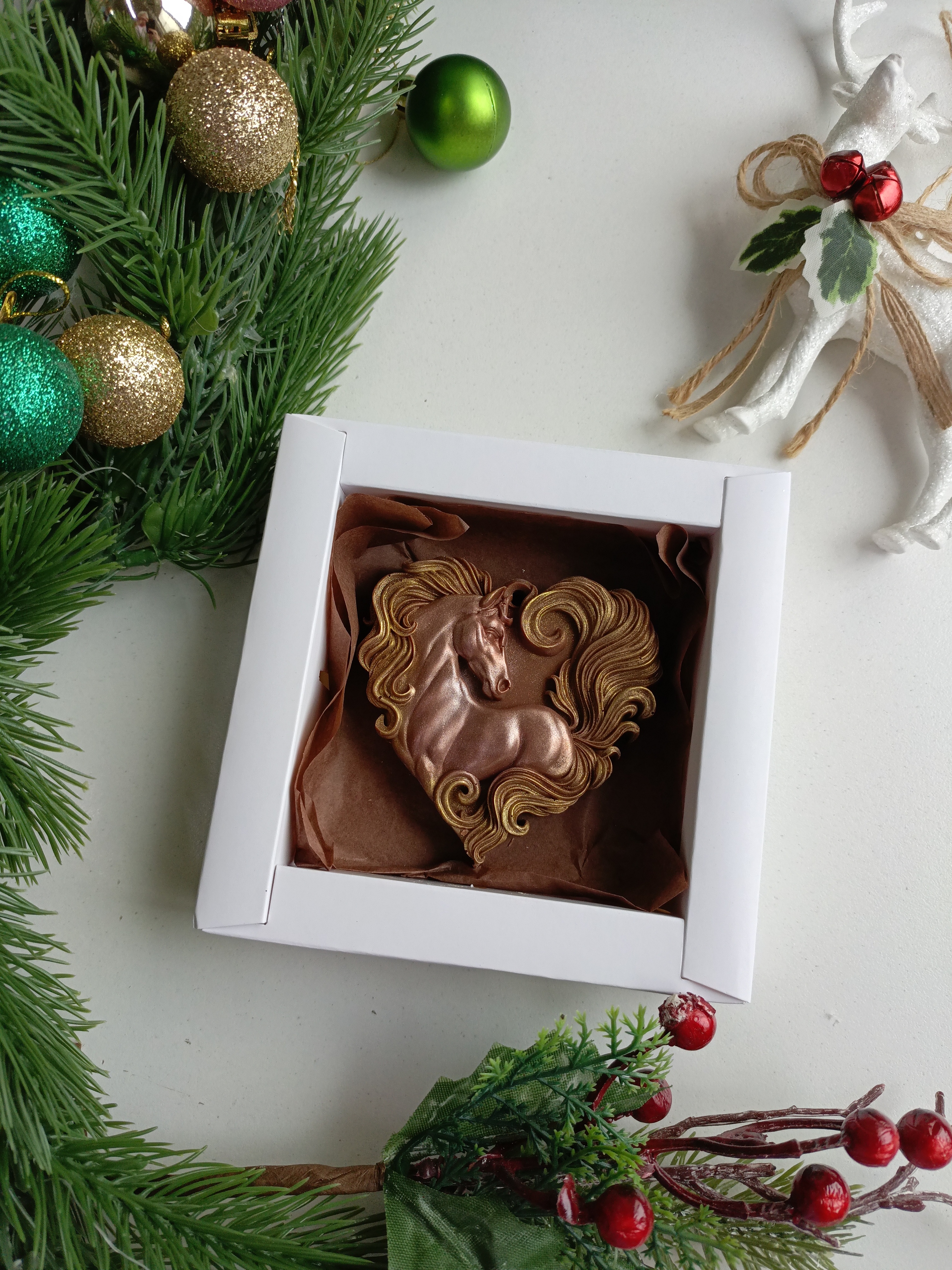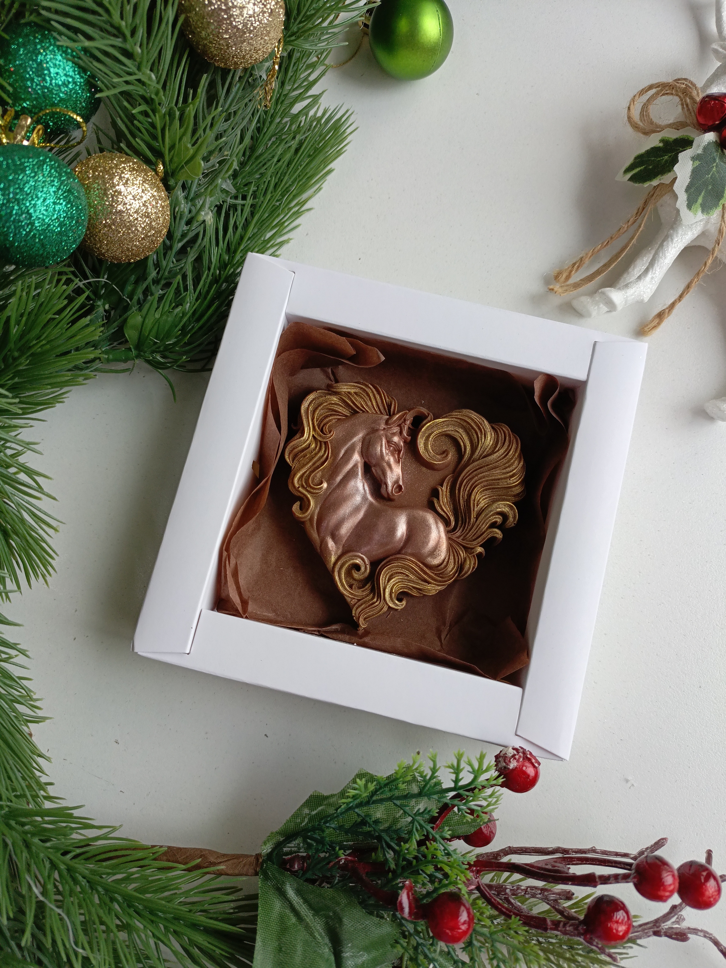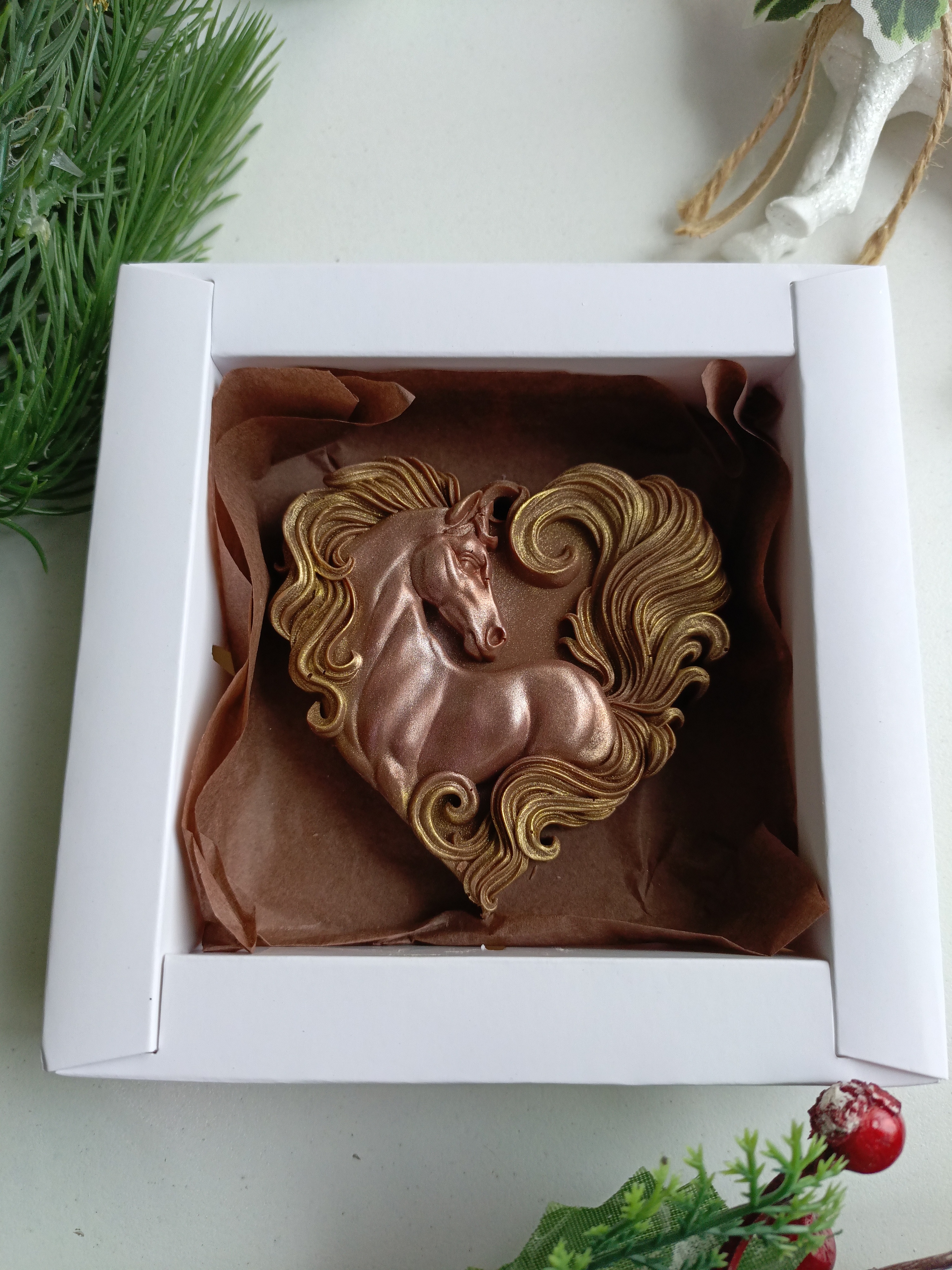 Сердечное пожелание успеха и вдохновения от символа года — шоколадной лошадки! Уникальный сладкий сюрприз станет прекрасным подарком близким людям или оригинальным акцентом вашего интерьера. Хрупкое шоколадное сердечко наполнено нежным кремово-шоколадным вкусом и атмосферой тепла домашнего уюта. Подарите радость себе или любимым уже сегодня!